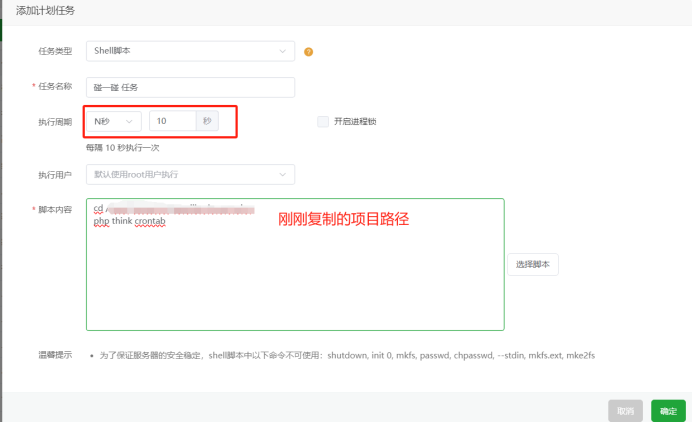 注意:如任务量较大建议执行时间延长至一分钟执行一次或二分钟执行一次