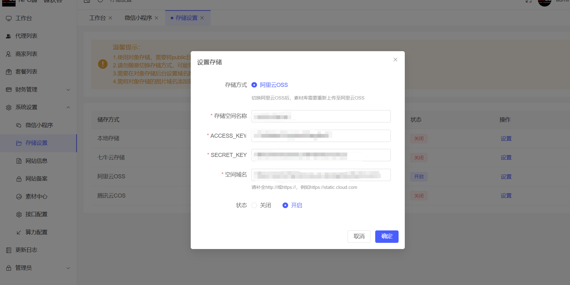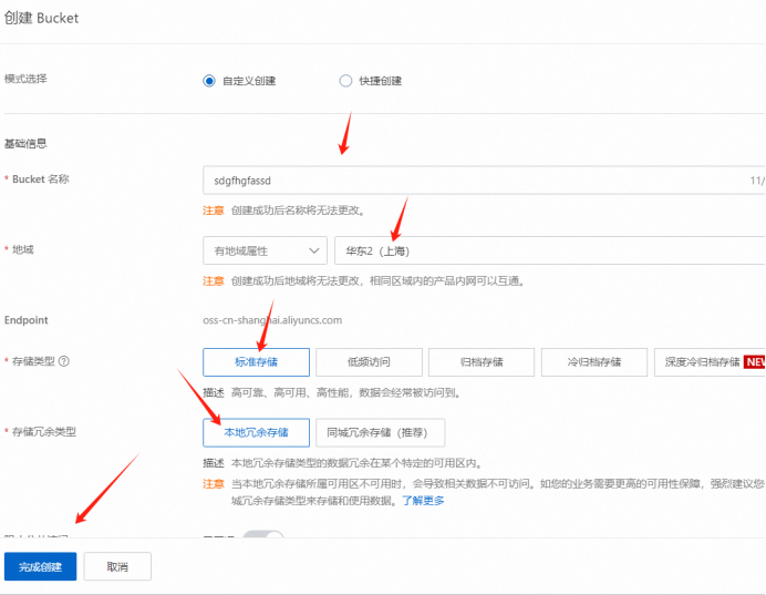 储存空间名称 https://空间名称.oss-cn-shanghai.aliyuncs.com密钥参考上面